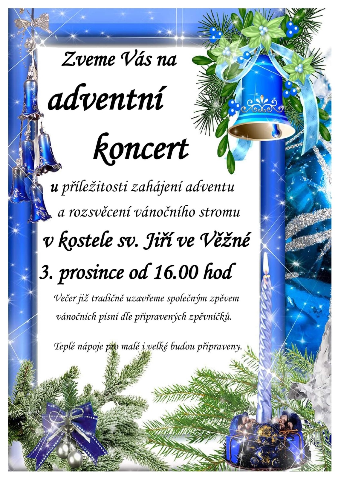 V neděli 3. 12. 2023 zahájíme advent koncertem dětí a mládeže z Věžné, Brné a okolí v kostele sv. Jiří ve Věžné. Začátek koncertu je v 16:00 hodin, poté dojde k rozsvícení vánočního stromu před farou....
